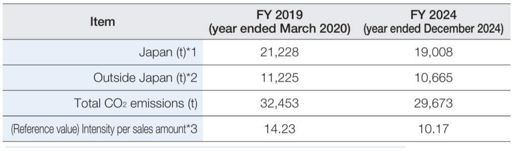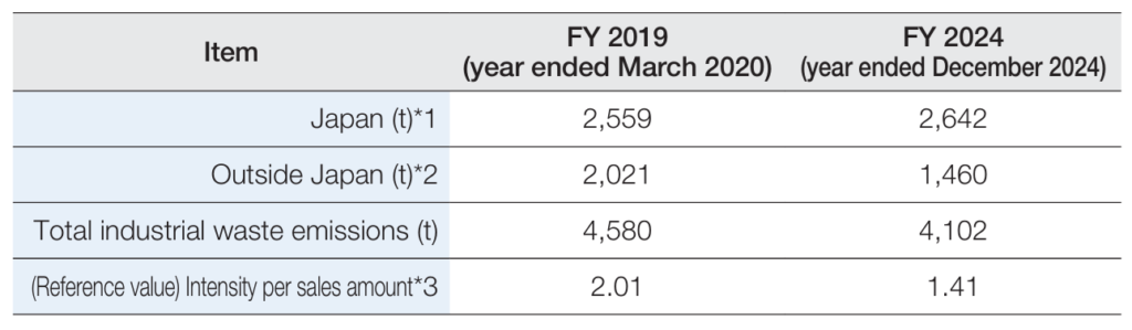 *2: Applicable to production locations outside Japan. The scope of calculation will be expanded to other group companies outside Japan in the future.