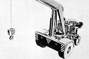 First 2.5-tonne telescopic mobile crane as yard crane, the forefather of all Demag telescopic cranes, with a hydraulic block and tackle for hoist rope instead of winch.