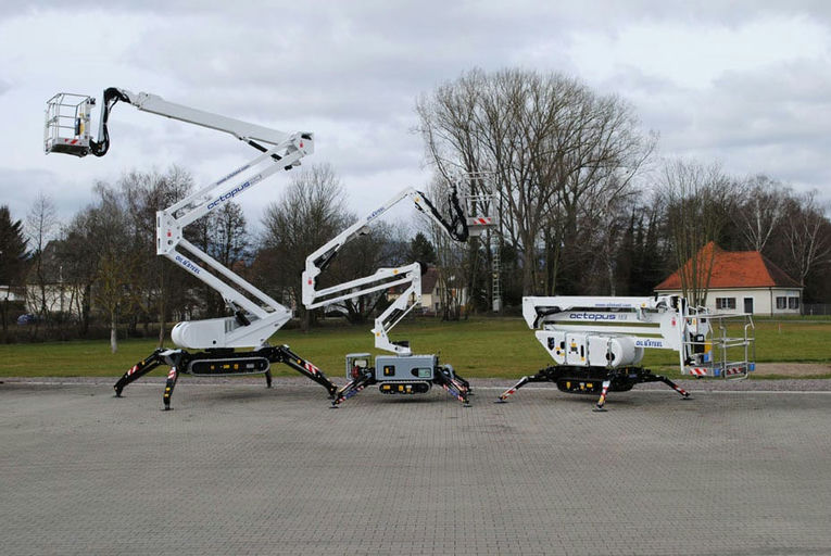 Durch die genaue Beobachtung der Marktentwicklung brachte Oil&Steel als erstes Unternehmen eine Reihe von Kettenarbeitsbühnen mit hydraulischen Absenkstützen auf den Markt – die „Octopus“-Baureihe.