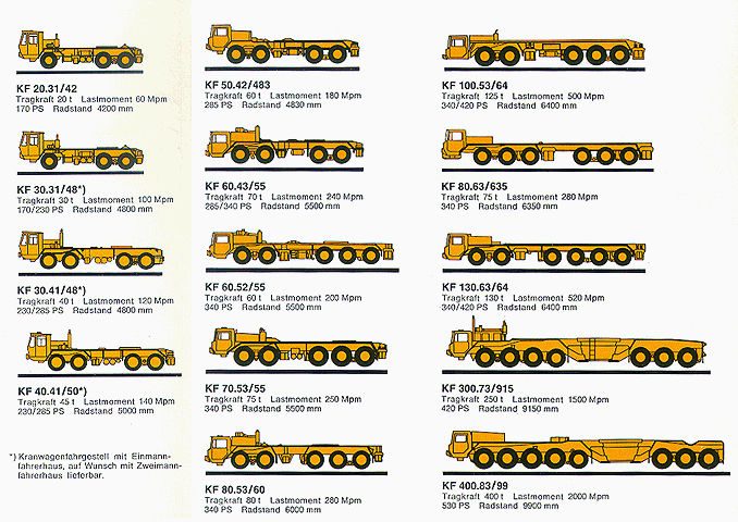 Until the end of the 1970s, the company produced crane trucks for almost all major crane manufacturers, trucks and tractors, municipal vehicles, dump trucks, street sweepers and steel/slag transporters for foundries.