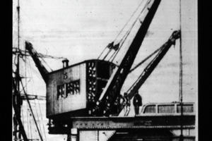 First 2.5-tonne telescopic mobile crane as yard crane, the forefather of all Demag telescopic cranes, with a hydraulic block and tackle for hoist rope instead of winch.