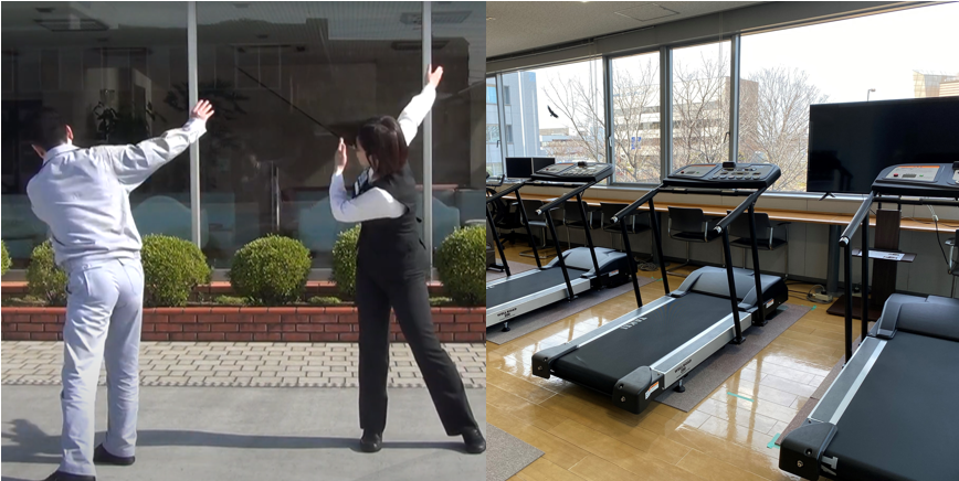 タダノでは、社員の健康維持と業務中の腰痛予防を目的に、就業開始時にラジオ体操と腰痛予防体操(約3分)を実施しています。さらに、2時間おきに「リフレッシュタイム」を設け、ストレッチ3種目を行う時間を設定。ストレッチを促す音響を流し、業務中でも集団で体を動かす習慣を取り入れています。