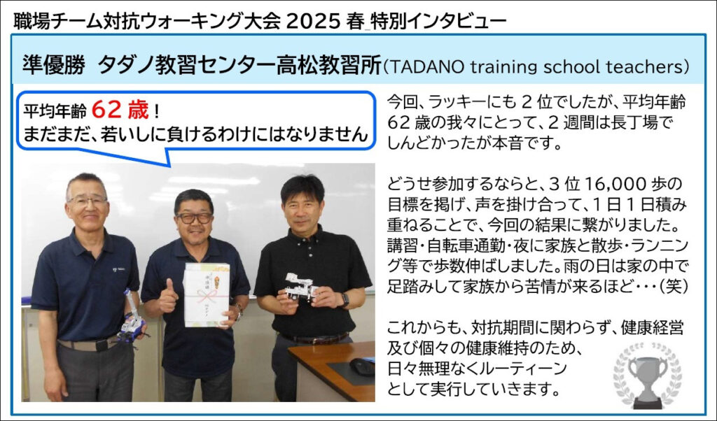 今後も、社員一人ひとりが自らの健康と向き合い、より良い生活習慣を築けるよう、継続的な支援を行ってまいります。