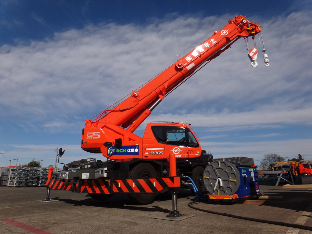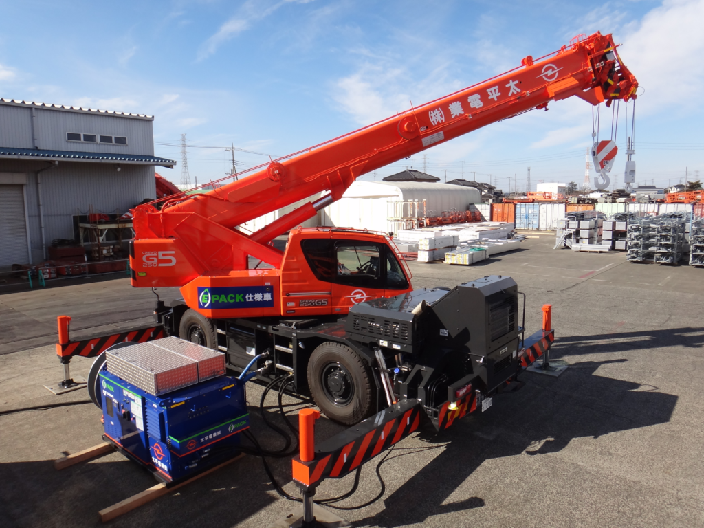 当社はこのたび、太平電業株式会社様とラフテレーンクレーン用電動パワーユニットe-Pack を共同開発し、2022年1月26日(水)太平電業株式会社様に先行導入いたしました。