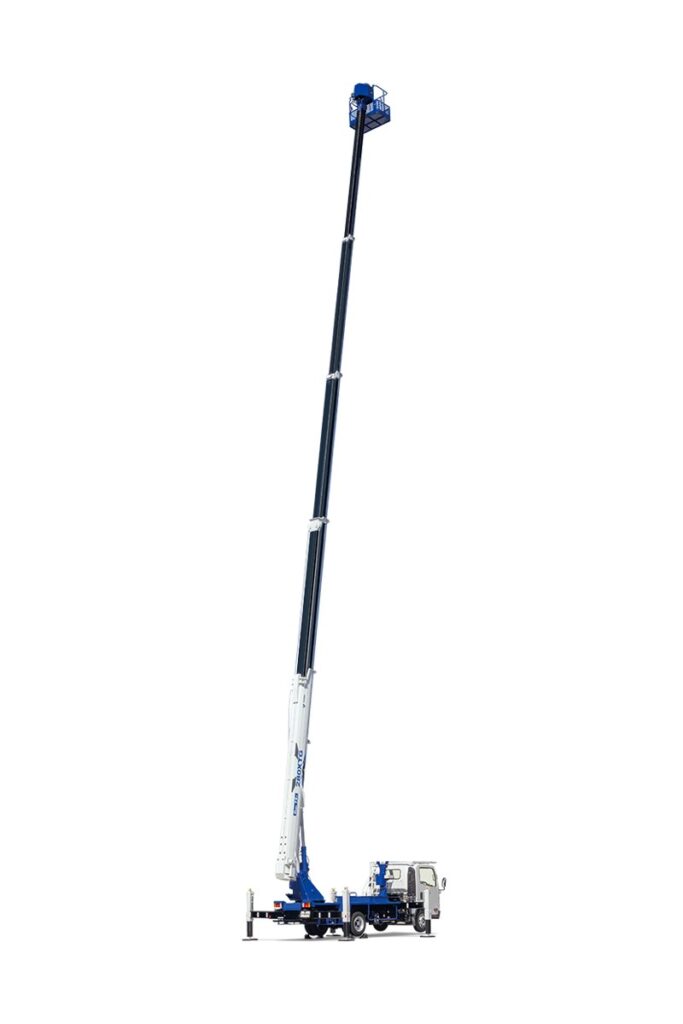 コンパクト化実現のため、本機では超軽量21面体5段同時伸縮ブームを採用し、3.5t車クラスへの架装を可能としました。車両のコンパクト化により準中型自動車免許でも運転可能となり、対象年齢層の拡大や狭所への進入性向上に貢献しております。