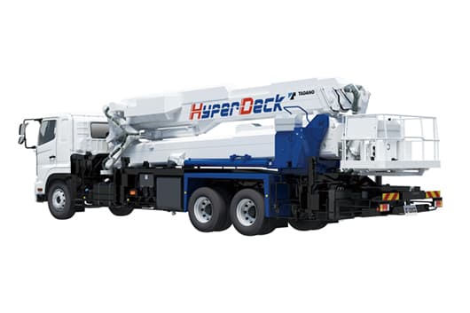 ハイパーデッキ AT-530CGは、近年における高所作業のさらなる多様化に応えるべく、従来の40mクラスのハイパーデッキから、大きく性能を凌駕する高所作業車として、地上高や作業範囲はもちろんのこと、安全性、快適性、使いやすさなど、各種機能の拡充をコンセプトとして開発されました。