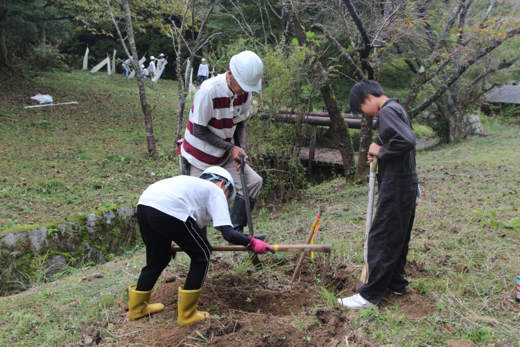 イベントには参加者18人が集まり、過去に植えた木のうち根付かずに枯れてしまった木6本を植え替えることから始まりました。参加者は苗木の成長を見据え、十分な深さと広さの穴を掘って新しい苗木を植えました。地面が固い箇所では苦労しながらも、丁寧に作業を進める姿が印象的でした。