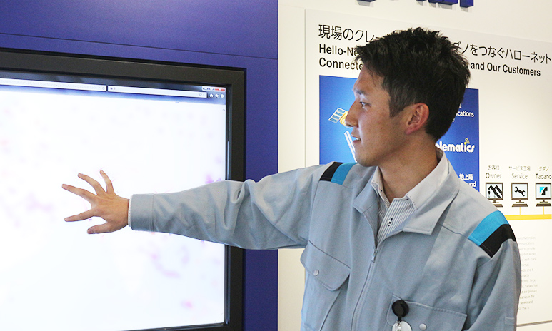このテレマティクス機能はタダノが10年以上前から始めているサービスで、「タダノの強み」です。相当費用が掛かるシステムですが、タダノはお客様にクレーンや高所作業車を安全に使ってもらいたい、そして困り事を無くしていきたいという思いから標準搭載し、利用料は無償で提供しています。この「タダノの強み」を活かし、さらに発展させることが自分の仕事なので、とてもやりがいを感じています。また、人に教え、育てることが好きなので、将来的には人財育成もしていきたいと思っています。