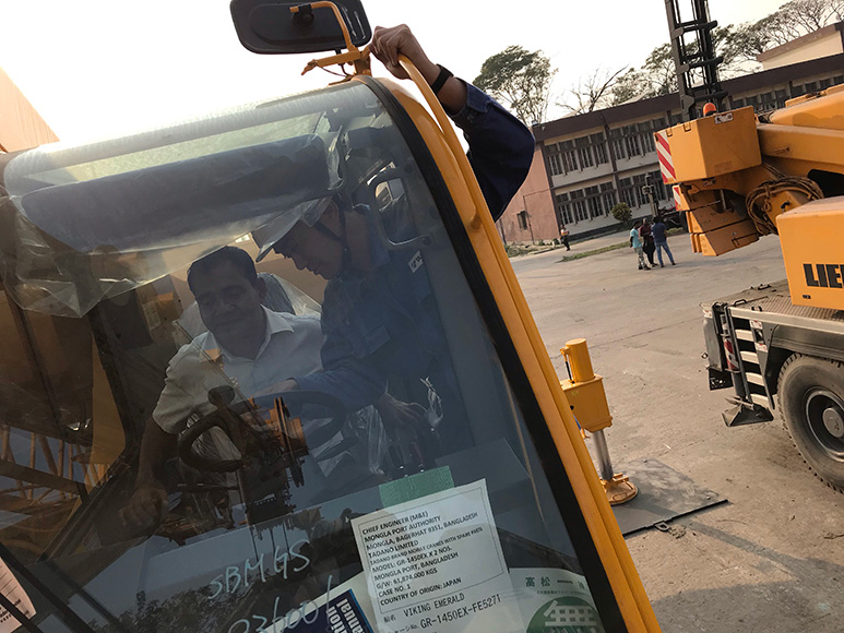 タダノのカスタマーサポートの役割の1つは、クレーンの修理・メンテナンスをしているサービス工場や代理店のサポートです。クレーンの不具合原因の調査・部品手配から、技術講習会を開催し現地サービススタッフの育成まで。また、お客様へは、納車時に運転指導(デリバリートレーニング)も行います。入社して、まずは日本国内で経験を積み、希望していた海外サービス部へ異動。アジア圏全域を担当しています。国内担当から海外担当になって一番驚いたことは、対応する機械が海外機種、クローラクレーン、日本から輸出された中古クレーンを併せると大幅に増えたこと。また、海外サービスのエンジニアは製品のことだけでなく、工事現場のルールや受け渡し条件など、営業関係の知識も把握しておく必要があります。それは国やお客様によって環境、文化など様々に異なるので、本当に幅広い知識が求められます。もともといろいろ覚えたい、いろんなところに行きたい、動き回りたい性格なので、大変というより面白いですね。まずは、海外駐在を経験して、その先将来何をやりたいか考えていきたいです。