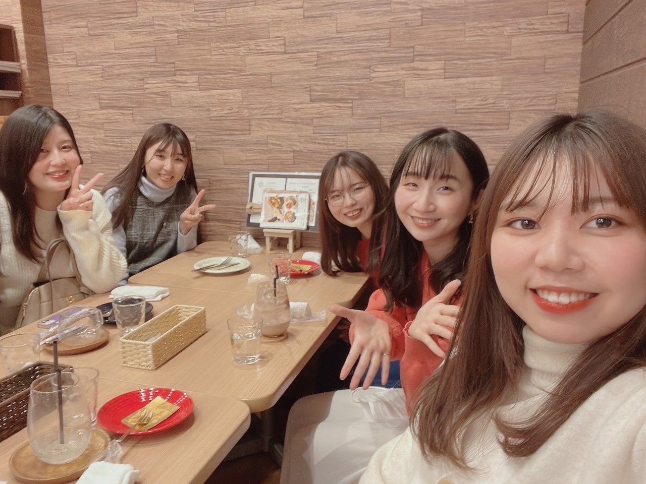 土日のうち1日は友達と、もう1日は実家で過ごすのが定番です。「友達の日」は会社の同期、高校や大学時代の友人など、毎週違うメンバーでランチへ出かけます。ランチタイムだけでは話し足りないので、その後は必ずスイーツのお店へ。これは高松商店街のカフェでクロッフルを食べた時の写真で、左から2番目が私です。「実家の日」は、祖母が腕によりをかけて筑前煮や天ぷらを作って待ってくれています。食事の後、一緒にショッピングモールへ行ってぶらぶらする時間は、おばあちゃん子だった私にとって今も大切なひととときです。大好きなおばあちゃん、いつまでも元気でね!