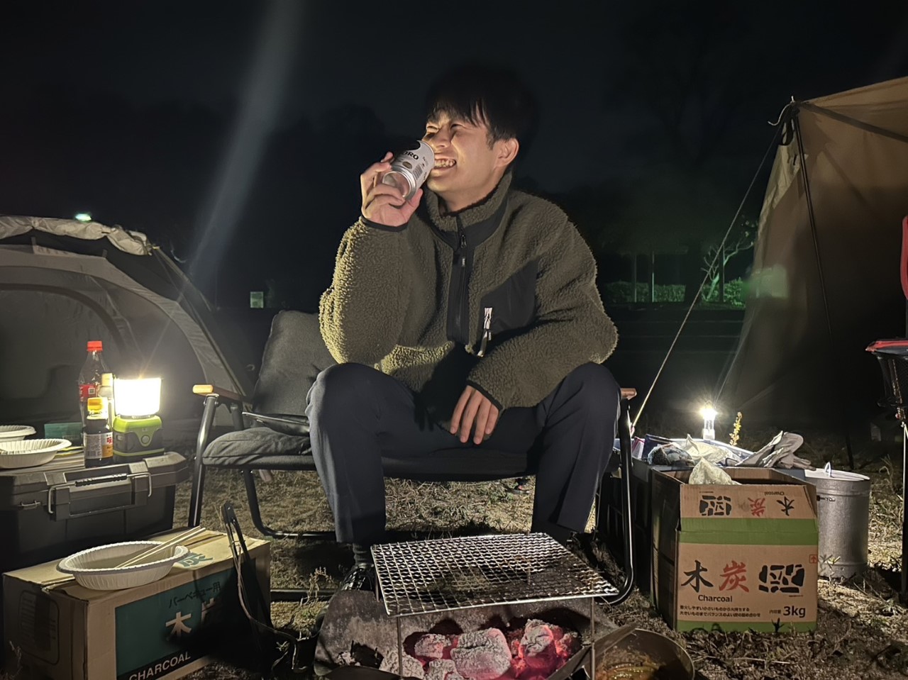 「同期や友人たちと大勢で何かすること」が趣味です。というのは、「釣りに行くけど一緒にどう?」「来週末のキャンプに参加しない?」といったお誘いに応じるうちに、気がつけば週末が予定だらけに(笑)。もともと趣味らしい趣味がなく、釣りもキャンプも自分から手を出すことはなかったのですが、今ではどちらも大好きになりました。キャンプ場で火を囲んで話す夜があんなに楽しく、太陽と共に目覚める朝があれほど爽やかだとは…夜型人間だった学生時代と様変わりです。先輩にいただいたテントや寝袋に加え、そろそろマイ釣り竿の購入を検討中です。